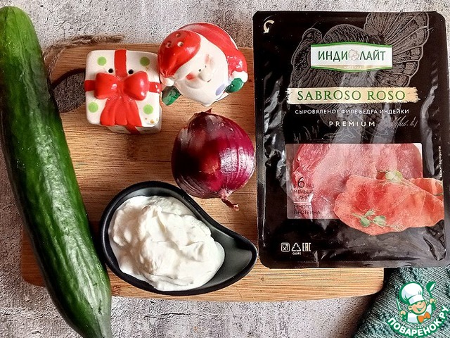 Ингредиенты для «Огуречный салат с сыровяленой индейкой»: