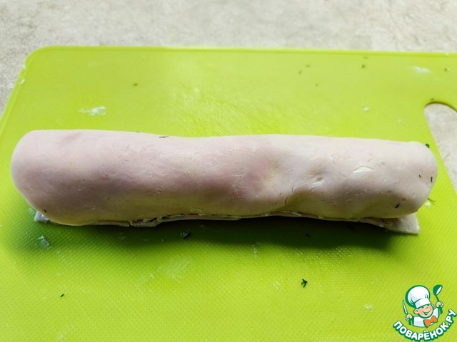 Завернуть рулетиком и нарезать кусочками.