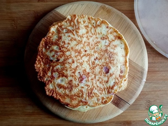 Лепёшки кабачково-луковые с припёком из мяса варёно-копчёной голени индейки, приготовленные на сковороде. Можно назвать: "Закусочные лепёшки". Ароматные, они подойдут для бутербродов к любому мясу, да и просто закусить или перекусить.