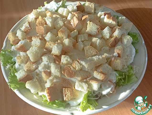 Вариантов приготовления "Цезаря" существует огромное множество, в том числе и на сайте представлено несколько разновидностей салата. Хочу предложить свой вариант этого салата с креветками. Несложный и быстрый.