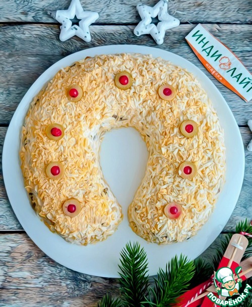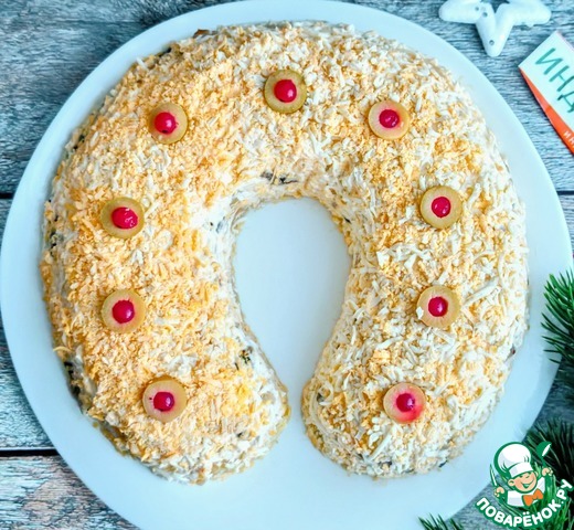 Рецепт «Салат с индейкой и грибами "Подкова"»: