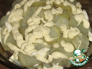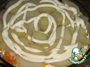 5-й слой - вторая половина картофеля и чуть майонеза.