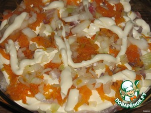 4-й слой - оставшийся лук и морковь+немного майонеза.