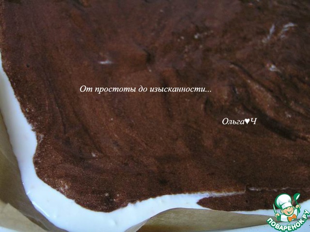 Сверху выложите шоколадное тесто, разровняйте.