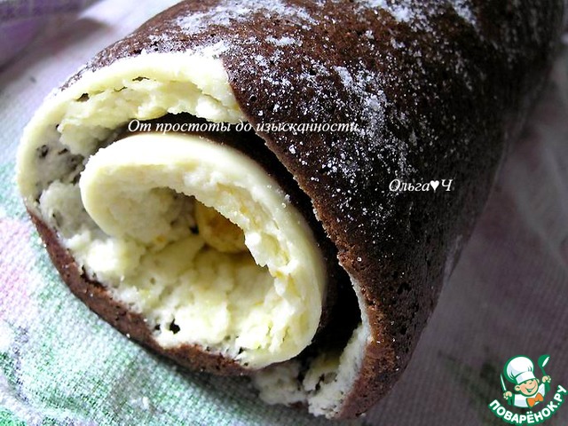 Рецепт «Шоколадно-творожный рулет "Рождественское полено"»: