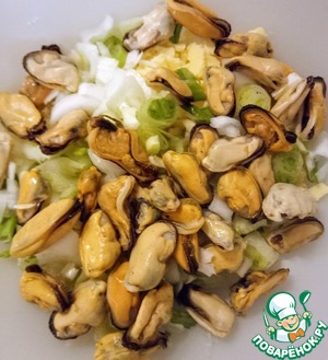 Редко беру рецепты из интернета, но в этом случае сделала исключение. Автору спасибо. Этот вкусный, пикантный салат из мидий и зелёного лука готовится готовится быстро. Ваши гости обязательно его оценят. Подавать можно в тарталетках.