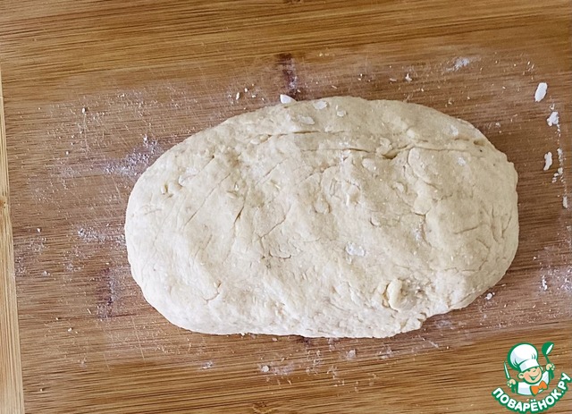 Собрать тесто в комок, тесто должно быть мягкое и не липнет к рукам, сильно не забивайте мукой, 10 -15 минут оставить отдыхать, разделить на две части