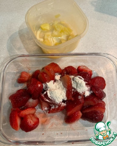 Фрукты/ягоды измельчить, добавить 5 г крахмала и сахар по вкусу