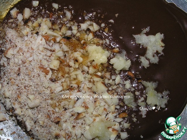 В маленькой миске смешайте чеснок, миндаль и шоколад.