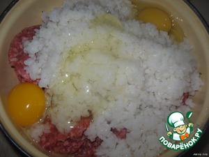В фарш добавляем мелко нарезанный лук (1 шт.).