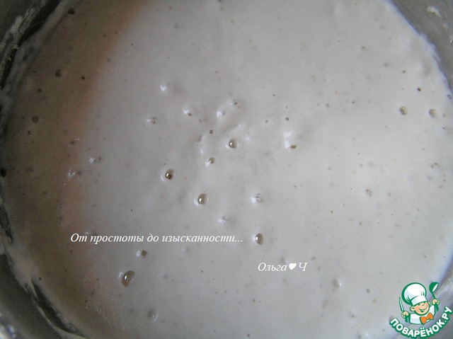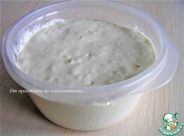 Перемешайте до однородности (консистенция густой сметаны), накройте крышкой и поставьте в теплое место.