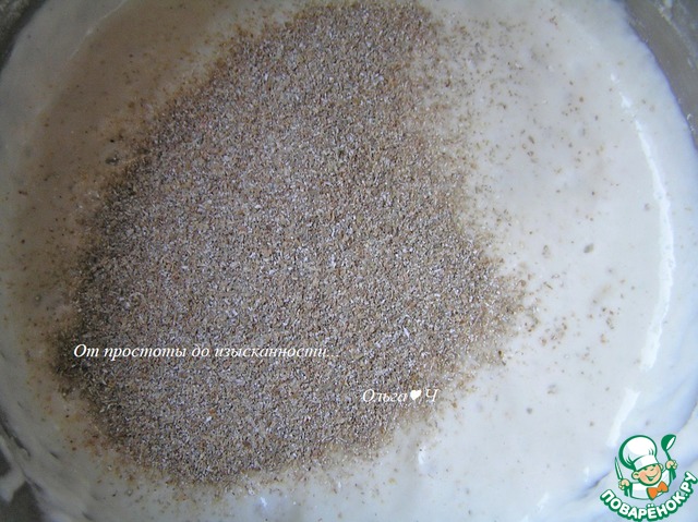 Приготовьте тесто. К опаре добавьте следующие ингредиенты, хорошо перемешивая после каждого: отруби.