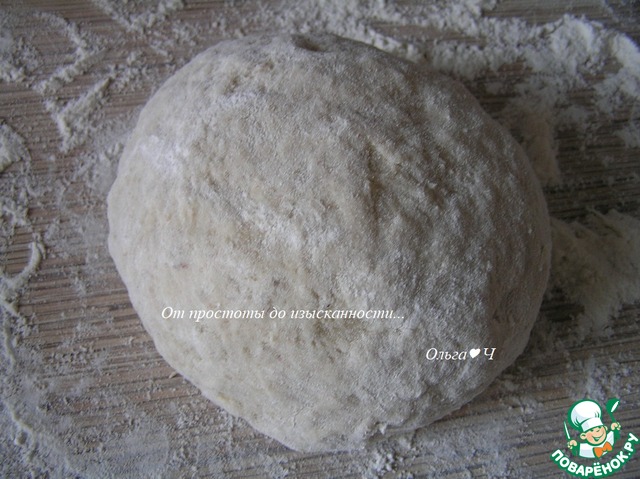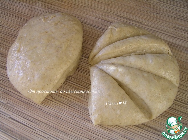 Рабочую поверхность хорошо смажьте маслом, выложите тесто, разделите на части. У меня половина теста для большого пирога-улитки и для 5 частей для средних булочек, а можно и на 6-8 частей разделить, тогда булочки будут более изящные.