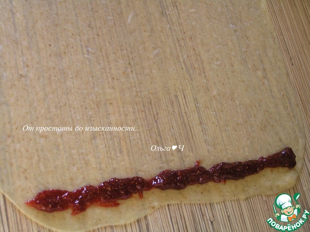 Рулет заверните спиралью, оставляя место для увеличения теста.