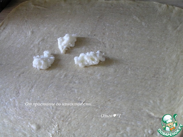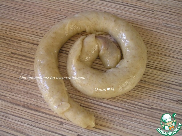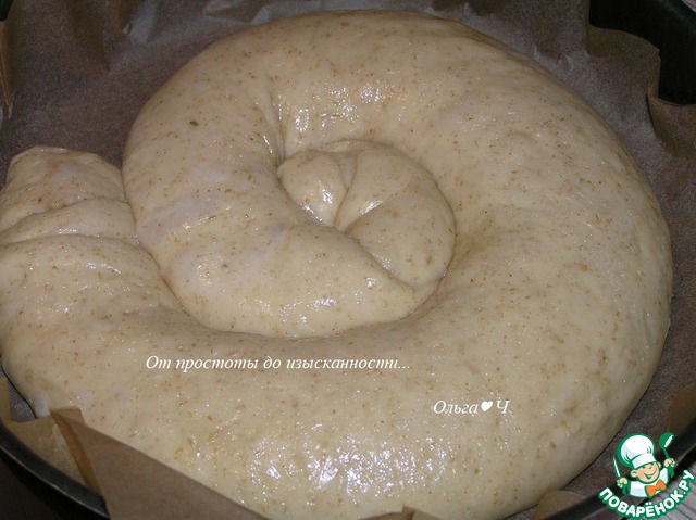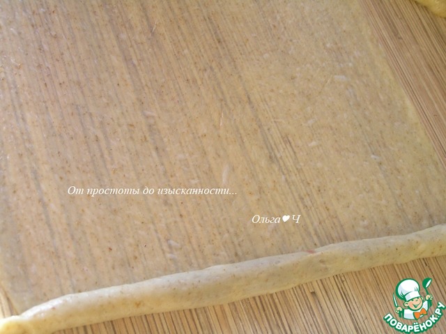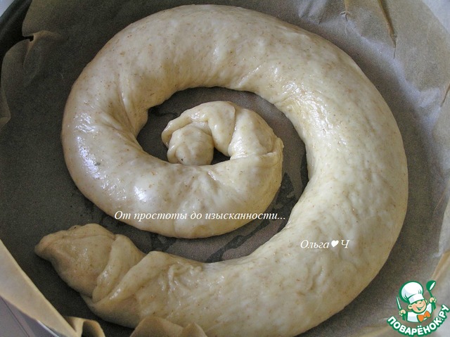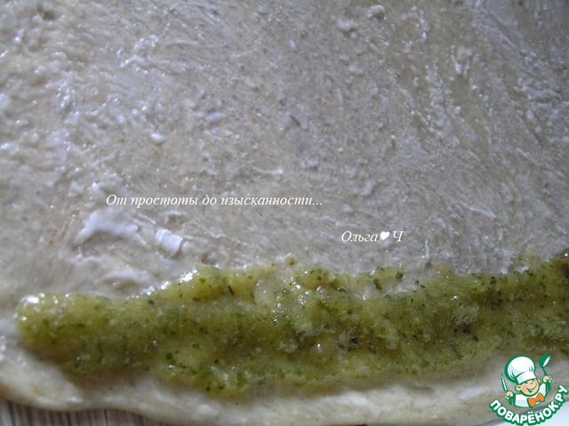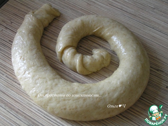 Сверните рулетом, затем улиткой, также оставляя место для увеличения теста.