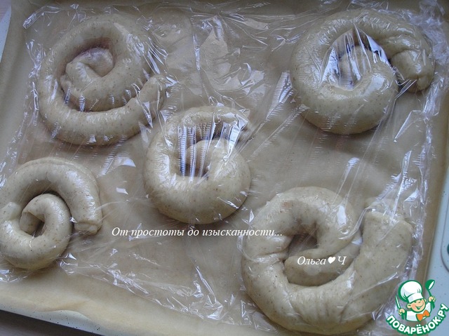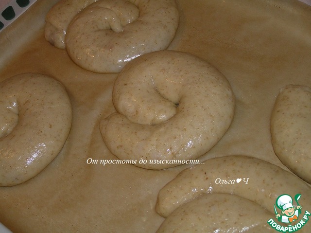 Таким же образом сделайте все булочки, накройте и оставьте в теплом месте примерно на 1 час. Я сразу выложила заготовки на противень, застеленный бумагой для выпечки, на расстоянии друг от друга.