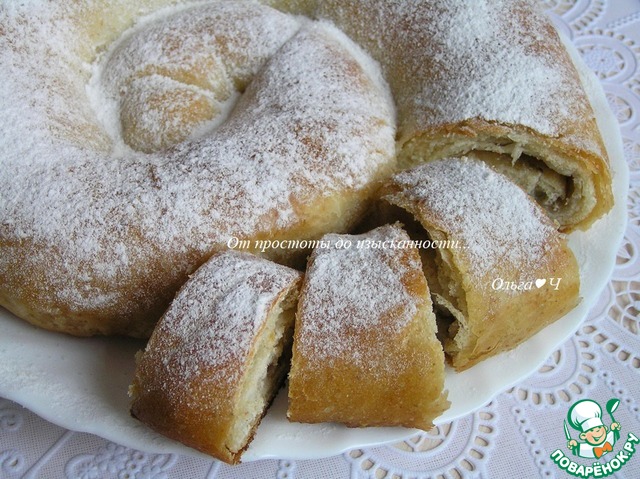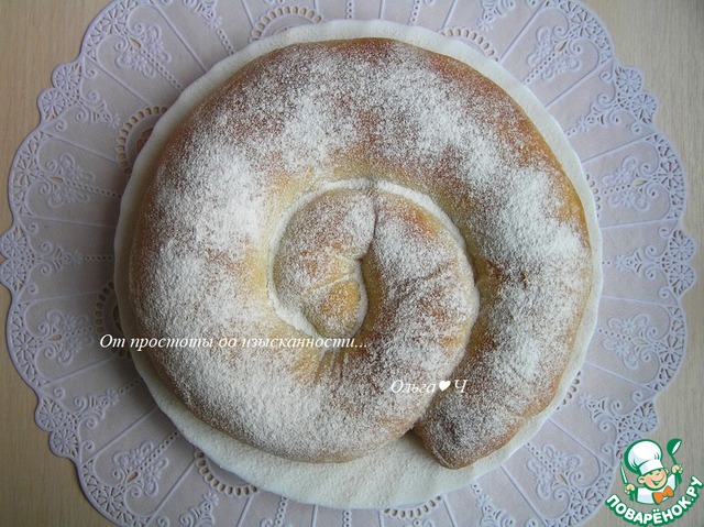 Когда испечется и большой пирог-улитка, также присыпьте его сахарной пудрой.