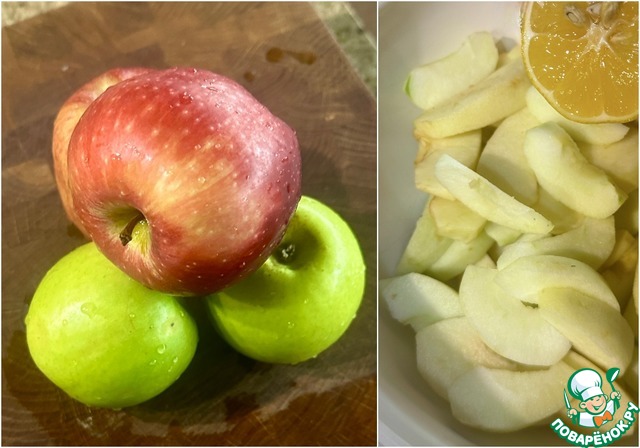 Ну раз яблочный, то с яблок и начал. Настоящих, нужных для пирогов яблок типа антоновки сейчас не сыскать. Семеренко хоть и не особо, но все-таки хоть какая-то замена. Ну и красненькое взял – для картинки.