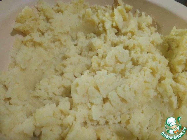 Картофель отварить в подсоленной воде, помять толкушкой, немного остудить.
