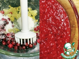 Пока белковый крем остывает, приготовим клюквенное пюре.