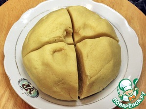 Соедините обе смеси и замесите тесто. Долго месить не надо: просто соберите в однородный комок. Тесто получится мягкое, податливое, не будет липнуть к рукам. Разделите его на четыре части, заверните в пленку и уберите в холодильник минимум на час.