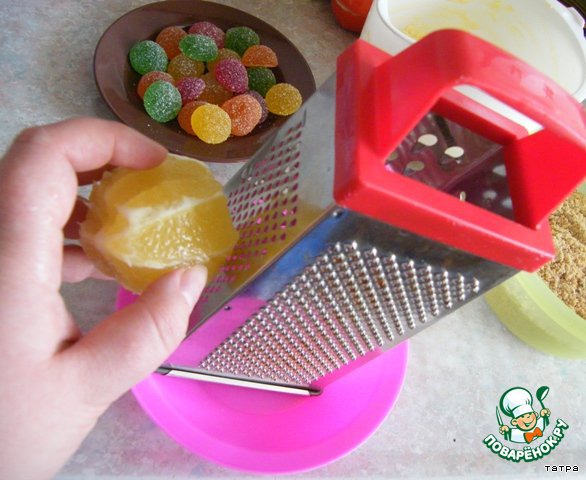Спасибо!Отдельно протираем на терке цедру,снимаем белый слой и протираем мякоть на терке или измельчаем др.способом.