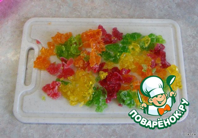 • Мармелад нарезаем кубиками.Вот такие получаются самоцветы.