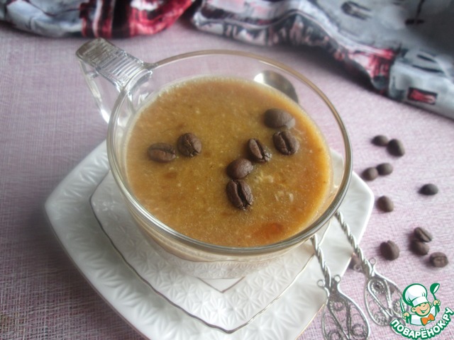 Подавать украсив зёрнышками кофе или листиками мяты.