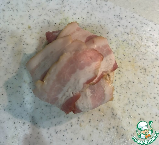На рабочую поверхность выложить слайсы бекона, как показано на фото