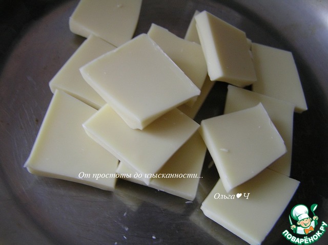 Белый шоколад поломайте на кусочки и растопите со сливками на водяной бане.