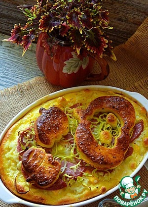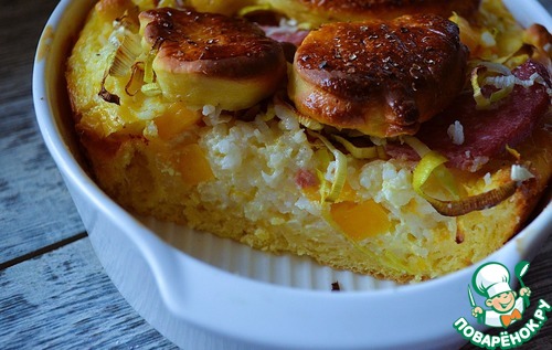 Рецепт «Пирог с рисом, тыквой и колбасой»: