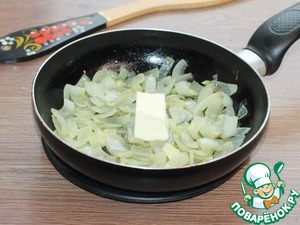 5. Доливаем в сковороду растительное масло (1 ст. л.) и обжариваем лук до золотистости.
