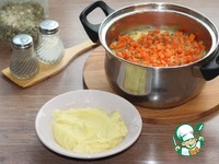 Смешиваем оставшееся пюре (390 г) с обжаренной морковью.