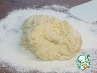 14. Подпыляем столешницу мукой (1/3 часть) и домешиваем тесто.