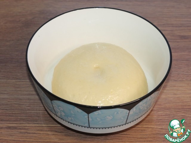 16. Смазываем большую миску и тесто растительным маслом. Закрываем миску пленкой и ставим в теплое место (на 1-1,5 часа) для увеличения теста в 2,5 раза.
