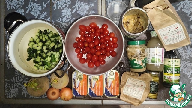 Ингредиенты для «Салат с печенью трески «Мужская сила»»:
