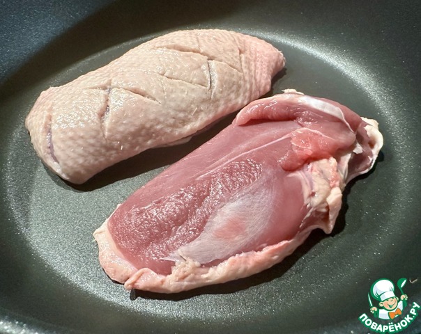 Вот собственно – она, та самая, утиная грудка. По коже сделал насечки. Хотя, это и не обязательно.