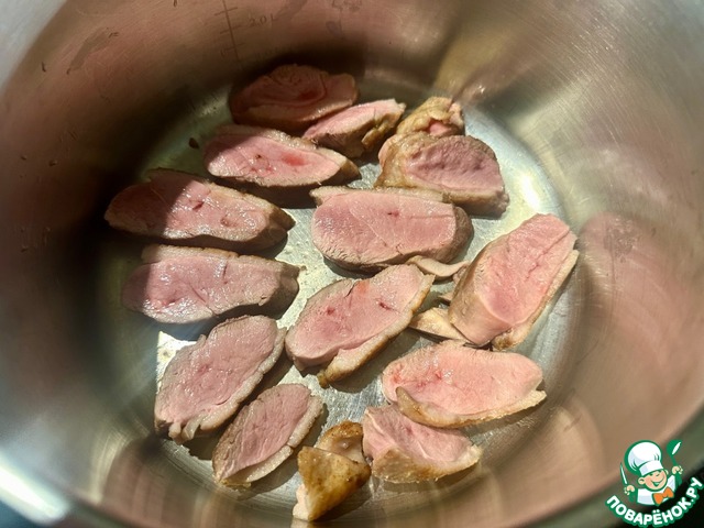 Поверх утиным ломтиков.