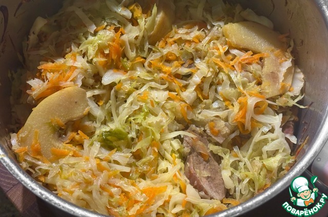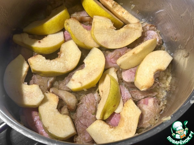 Потом айва в ход пошла. Если нет айвы, можно яблоко взять. Лучше кисловатое.