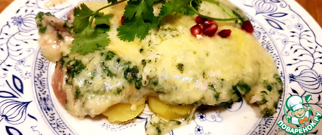 Рецепт «Свинина с картошкой и зеленью под сметанным соусом»:
