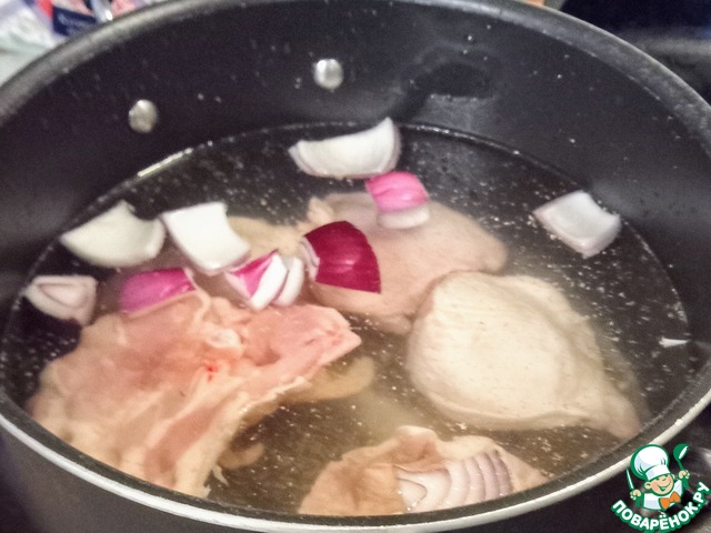 Хотя не совсем понятно, зачем куриные бёдра ещё варить в курином бульоне?