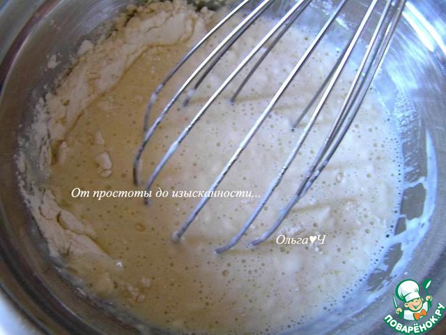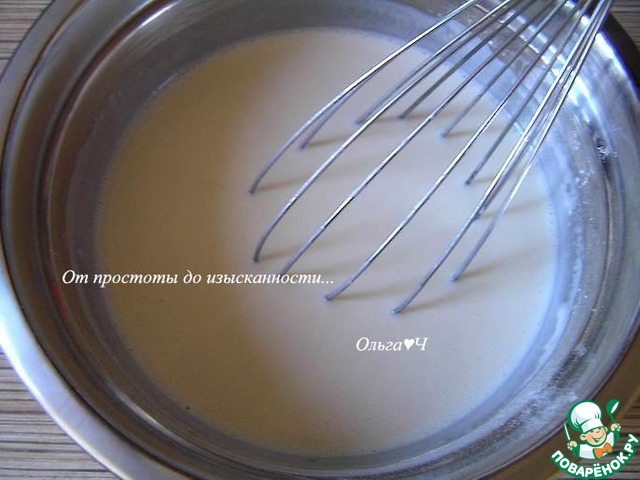 Взбейте венчиком до однородности и влейте оставшееся молоко.