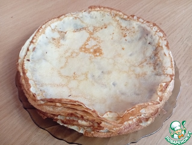 Получается около 12-16 тонких блинчиков при размере сковороды 20 см.