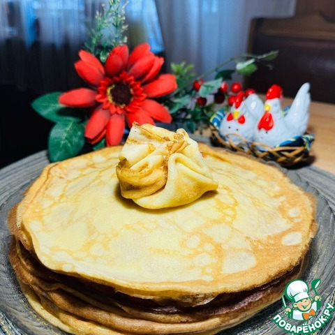 Вариант тонких блинчиков от известного шеф-повара и телеведущего из его книги "Десерты". По рецепту блины готовятся без сахара и жарятся только на сливочном масле, желательно на топленом или масле ГХИ. Получаются тонкие и вкусные сливочные блинчики, которые очень хороши как сами по себе, так и со всевозможными начинками: солеными или сладкими. Попробуйте, скоро Масленица!