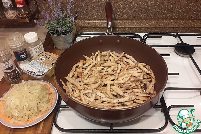 А ведь сметаны нет в блюде, а ощущение, что она есть. И мясо похоже уже не на птицу, а на биффа