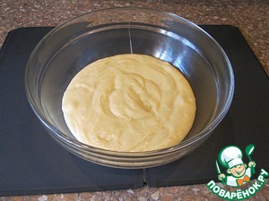 Форму для запекания смазать маслом, выложить туда готовое тесто заполнив ее на 3/4 высоты