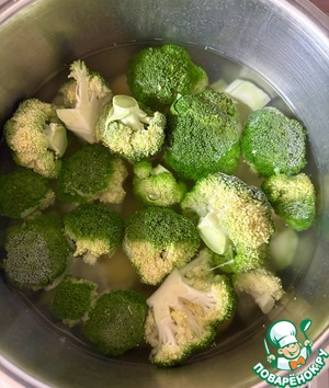 Отварить картофель и кочерыжку от брокколи около 7 минут, добавить соцветия и варить ещё 5 минут.