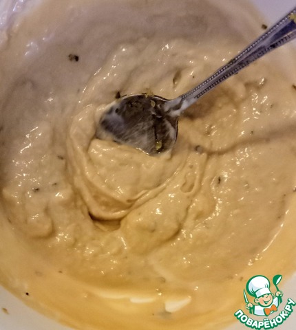 • Сделать заправку, смешав тахинную пасту, чеснок, масло оливковое, бальзамик и йогурт.