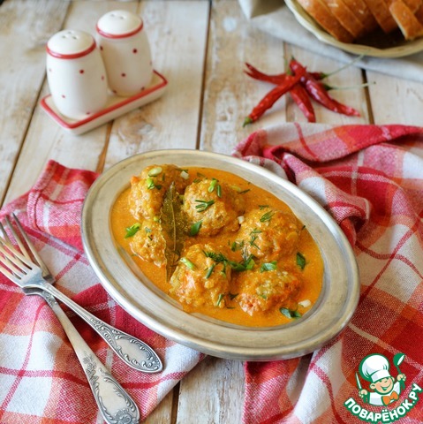 В детстве мама такие тефтели «ёжиками» называла. Наверное, из-за того, что рисинки вроде бы как вздыбливались и изображали из себя иголки. А томатно-сметанный соус...? Да тоже, в общем, ничего нового. Так, или примерно так, тогда и готовили. Абсолютно все продукты из списка общеупотребительных.