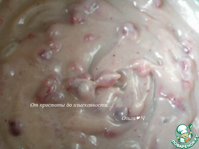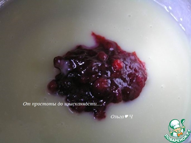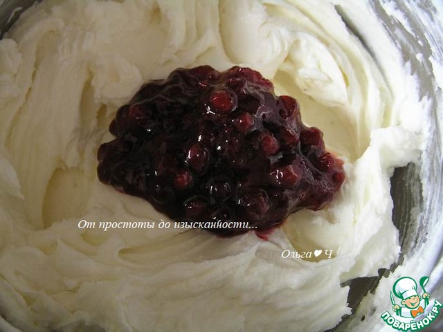 В оставшуюся творожную массу добавьте 50 г брусничного соуса.